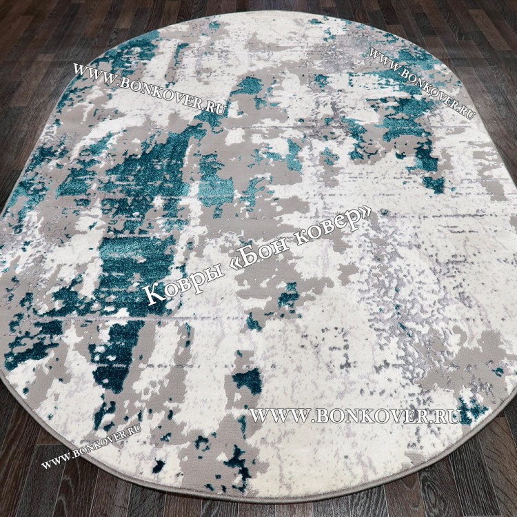 Элегантный Современный ковер для комнаты 02 Бирюзовый Овал наполняет интерьер комнаты теплом и уютом, гармонично сочетает в себе изящество и красоту. Он изготовлен из экологически чистого сырья, комфортный и долговечный.