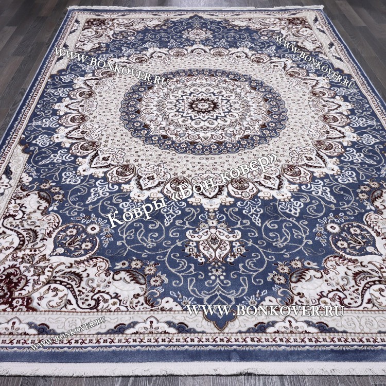 Турецкий Ковер Медальон дизайн 87 Синий станет привлекательным дополнением интерьера, оформленного в современном или классическом стиле. Мягкое, но прочное, ковровое покрытие обеспечивает тепло- и шумоизоляцию, отличается длительным периодом эксплуатации, надежностью, экологичностью и высокой износостойкостью, является отличным барьером от повышенной влажности в комнате и утеплителем для холодного пола. Благодаря качеству материалов, ковер не деформируется, сохраняет первоначальный вид под тяжестью предметов мебели. За его поверхностью легко ухаживать.